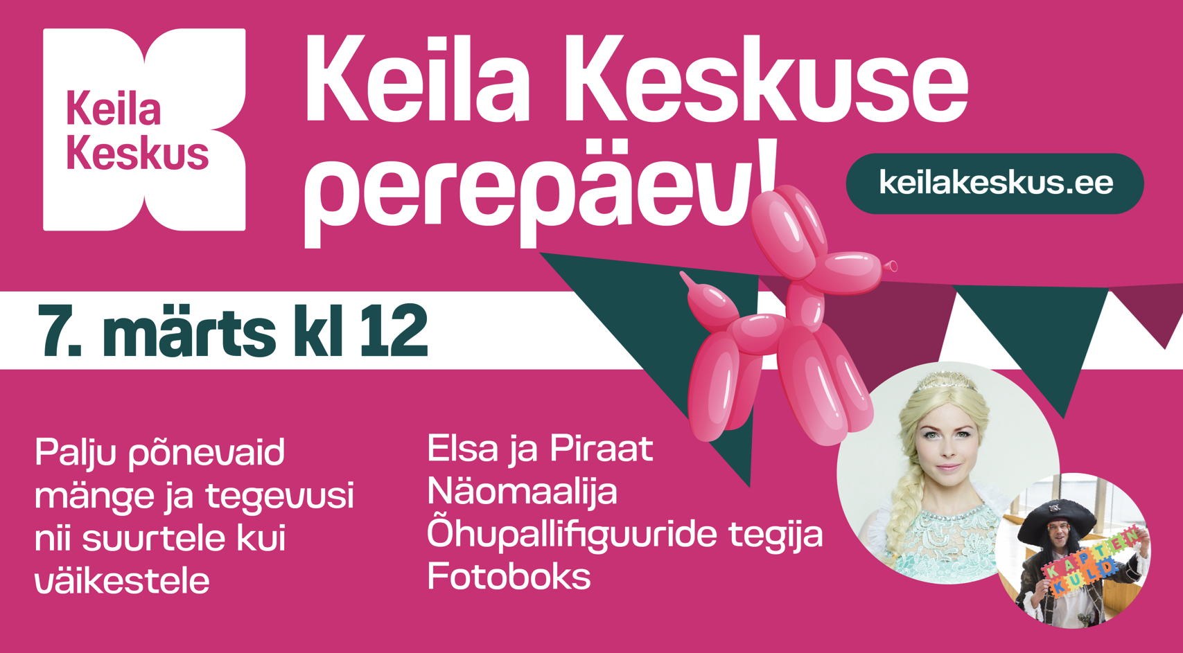 Tagasi 7. märts on mänguline perepäev 07.03.26 Tere tulemast uude Keila Keskusesse. Täna on Keila Keskuses perepäev algusega kell 12.00. Laupäeviti on keskus avatud kella 10.00-st kuni 20.00-ni. Coop Maksimarket on avatud iga päev 09.00 – 22.00. Tere tulemast! Keila Keskus Tagasi