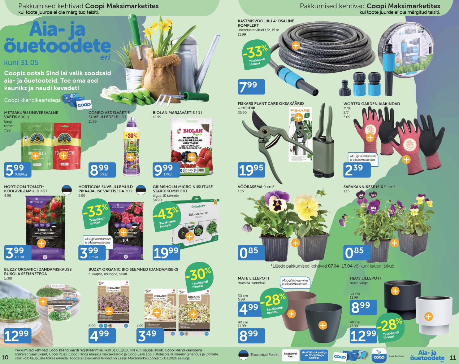 Parimad pakkumised ja istutamiseks vajalik rohenäppudele. Aia- ja õuetoodete eripakkumised Coop kliendikaardi omanikele kuni 31.05.2026.