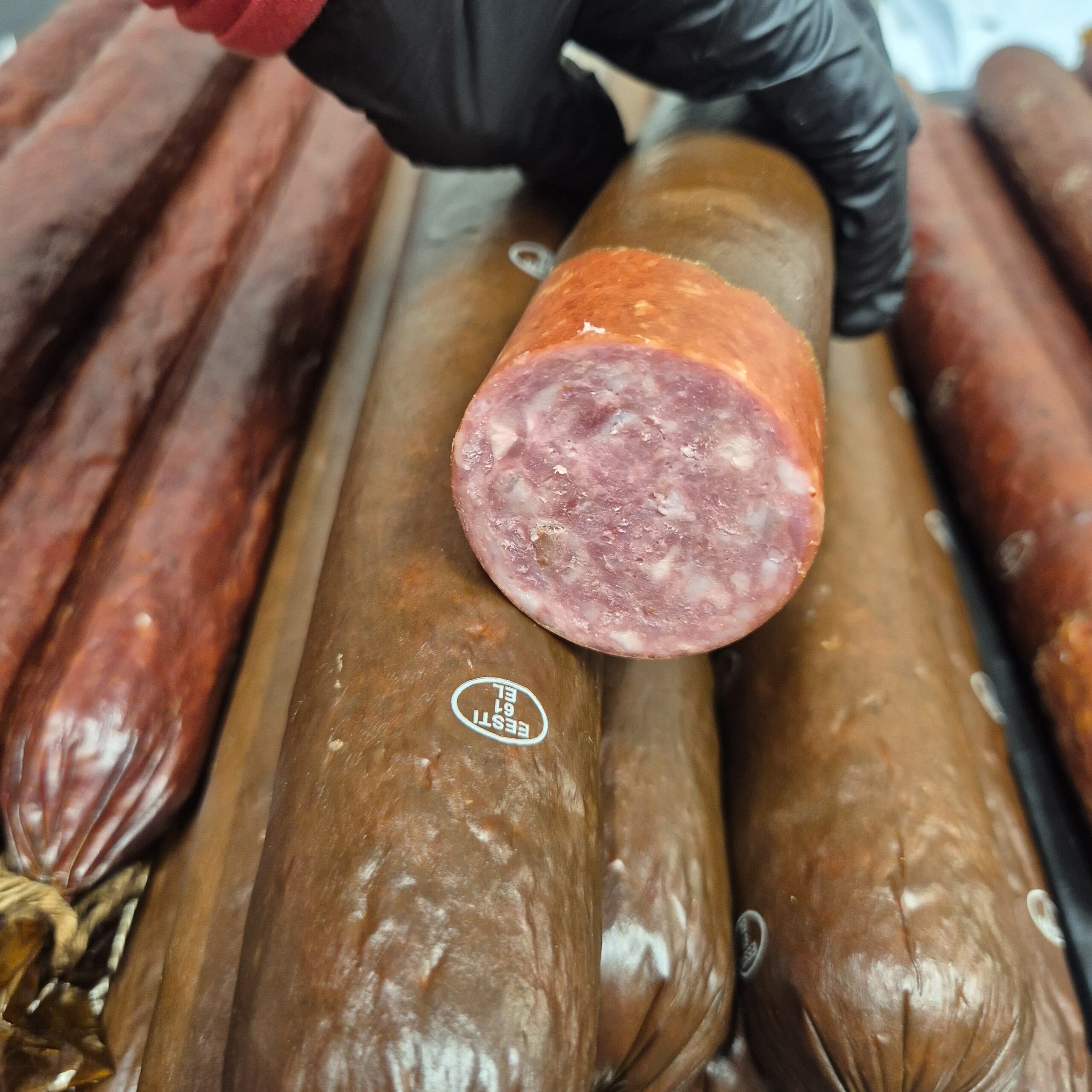 Oma lihatooted valmistame käsitööna, suure hoole ja armastusega – soolame iga lihatüki eraldi. Kasutame kuiva meresoola ning meie tooted on täielikult e-ainete ja muude allergeenideta. Liha on naturaalne ja ehedalt maalähedase maitsega. Valmistame oma tooteid kivisuitsuahjus, mille kerisekivid annavad lihale mõnusa saunasuitsuse nüansi. Nagu kliendid tihti ütlevad – justkui vanasti vanaema juures maal tehtud. Tulemus on mõnusalt mahlane ja parajalt soolane.