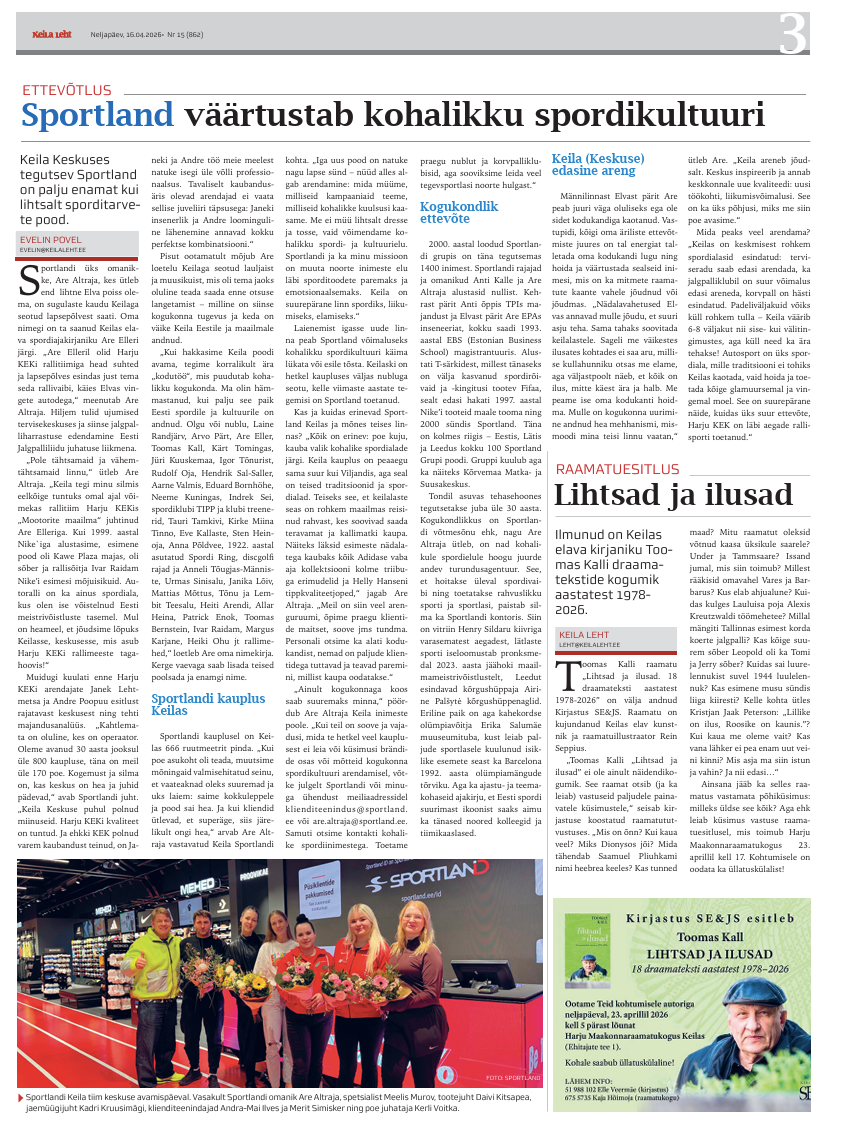 16.aprill 2026 Keila Lehes ilmunud Sportlandi ühe omaniku Are Altraja intervjuud “Sportland väärtustab kohalikku spordikultuuri”.